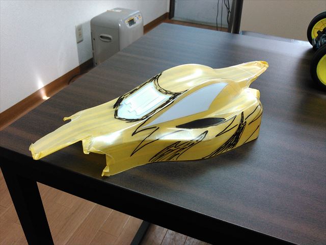 ポリカボディの表面には保護フィルムが貼り付けられているので遠慮無くマジックで書き込みます。