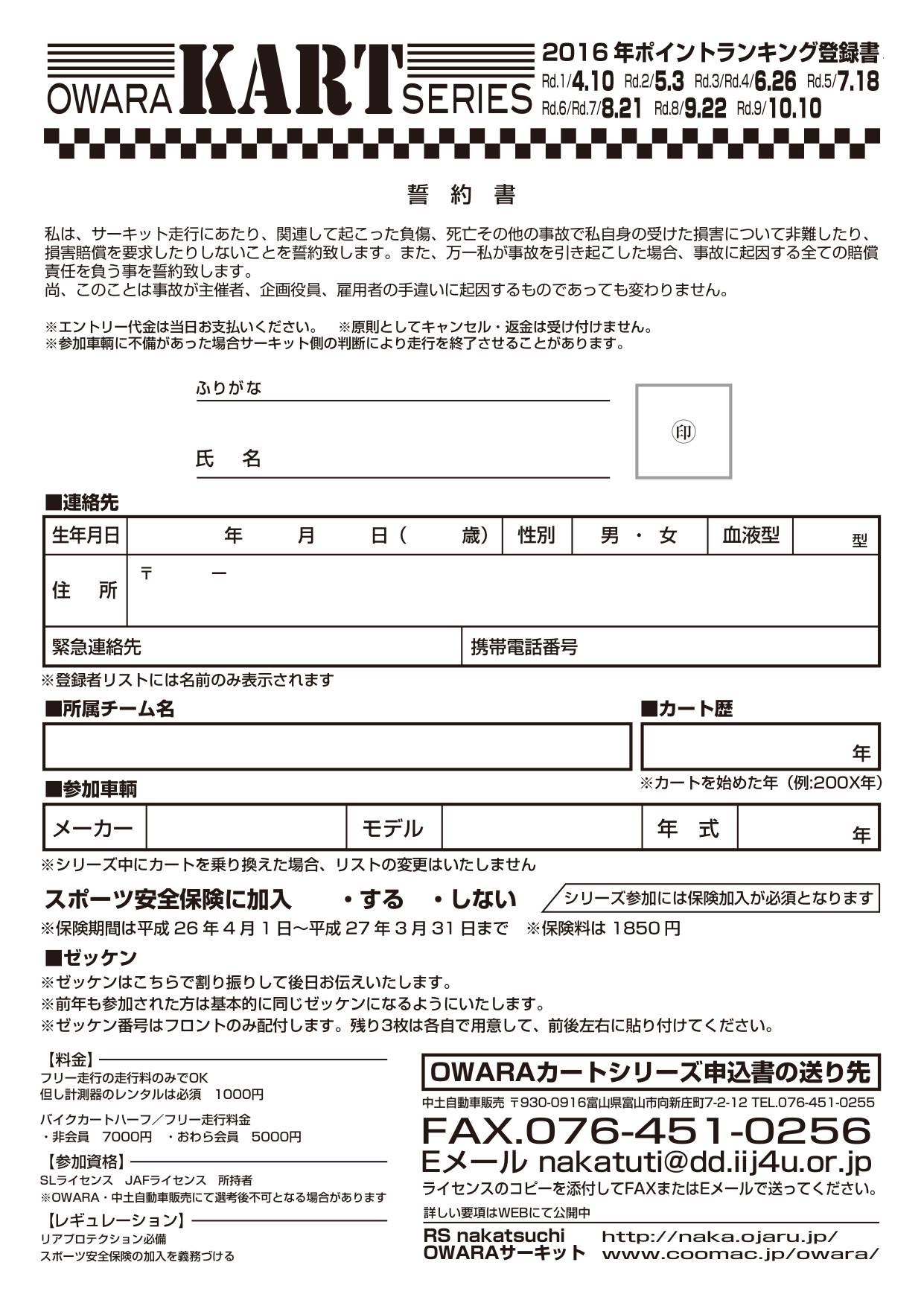第2戦までに更新のお手続きがされない場合、昨年のゼッケンは抹消となりますのでご注意ください。
