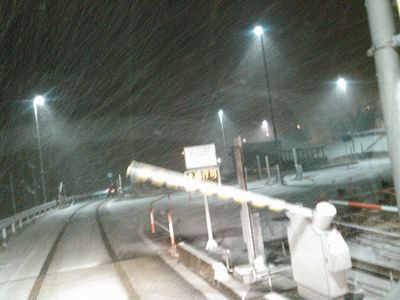 突然降り出した雪のせいでスリックレインならぬスリックスノー。