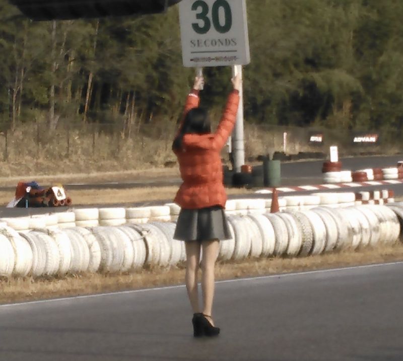 石野サーキットで「富山では雪上カートやってるからね、滑る路面はお手の物ですよ」