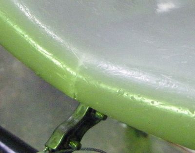 FRP補修剤で修理したシートはそこだけ硬くなるので、これまたおかしい動きのシートになってしまうのです。