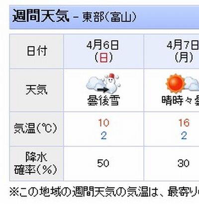 前日までの予報ですと雨でした。