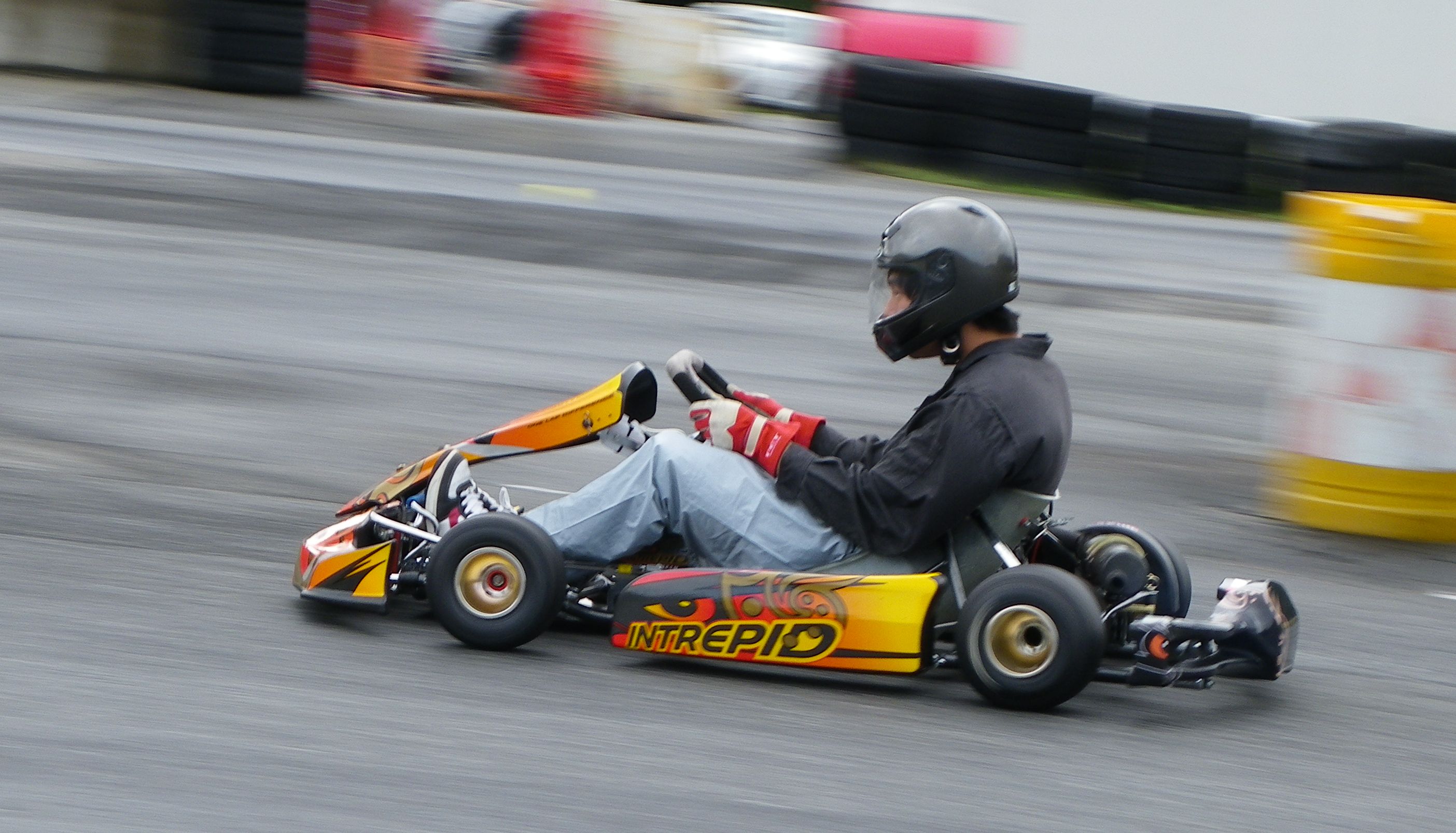 カートで流し撮りは基本ですが、その背景にブロック塀やらタイヤやらを入れたくないとのこと。