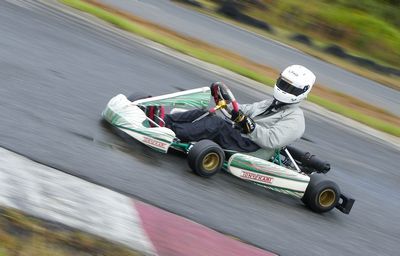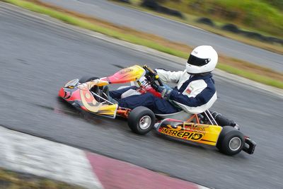 カート初心者の上野さんではありますがスリックレインでコースイン!