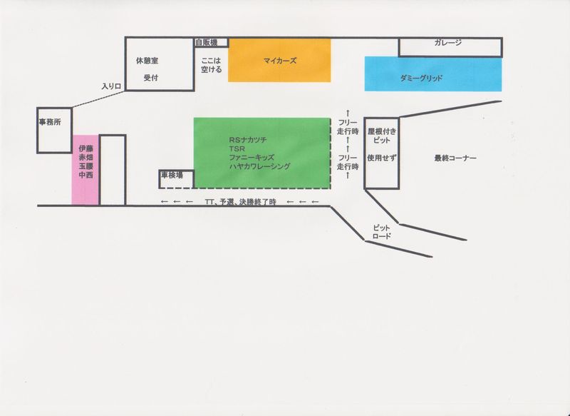 フリー走行時のピットインは屋根付きピットの横を通ってください。