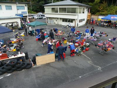 TT、予選、決勝後には車検場で重量を測定しますので、川沿いを走って車検場前に並んでください。