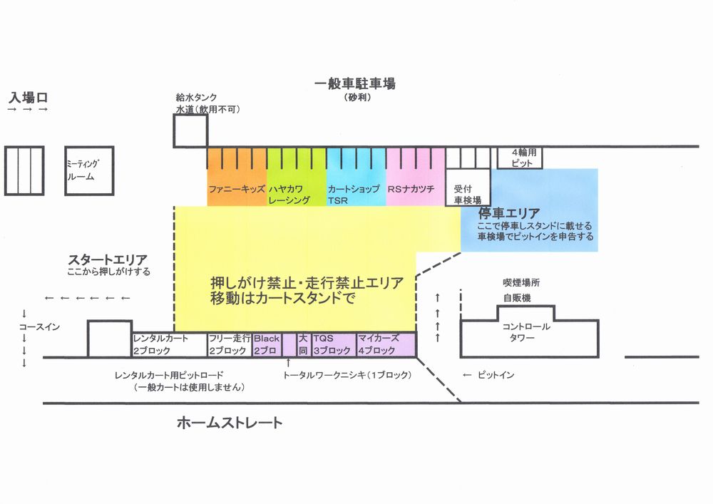 それぞれお申し込みショップの位置にピットを設営してください。