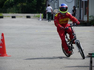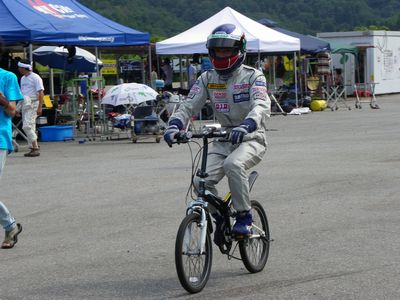 熱中症対策のため、ヘルメットはぬいでも良いことにしたのですが、時間が惜しいのか、ほとんどのドライバーはヘルメット装着のまま走行。おかげでイイ写真が撮れました。ありがとうございます。