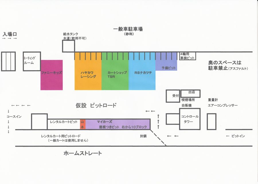 本来のピットロードはレンタルカート専用とし、一般カートは使用しません。