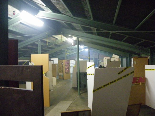 たて25m、よこ10mほどの室内に障害物が乱立。