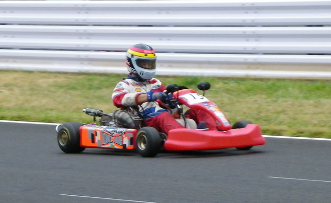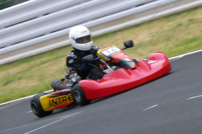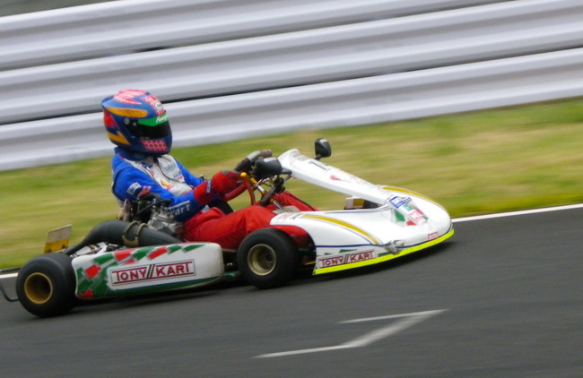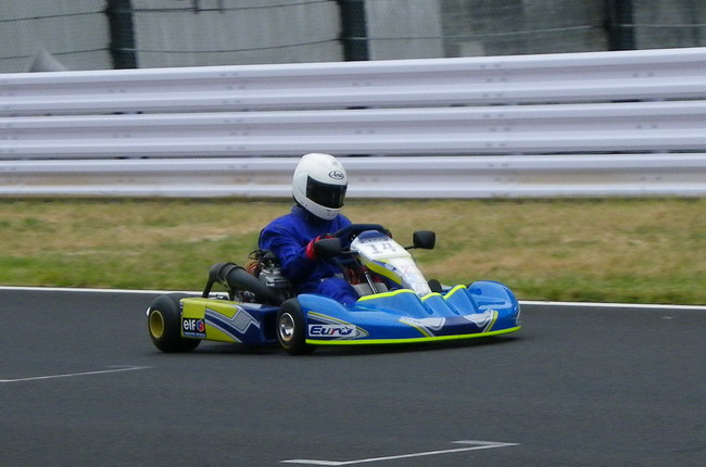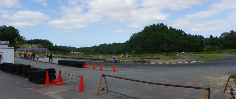 楽しすぎてチェッカーフラッグを見逃してダブルチェッカーを受けてしまいました。ピット出口から逆走でピットイン。あの長い坂をカートを押して戻りました。
