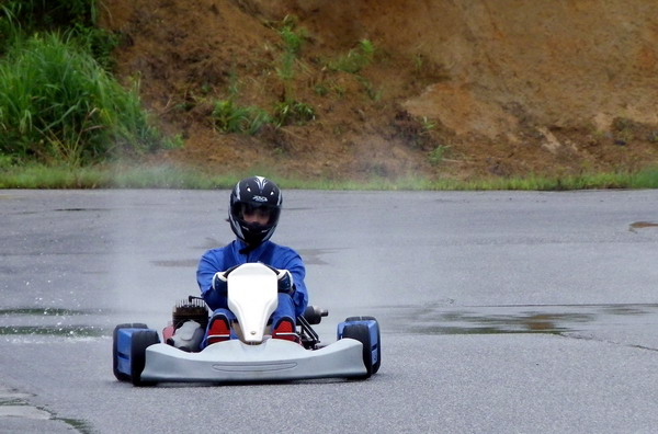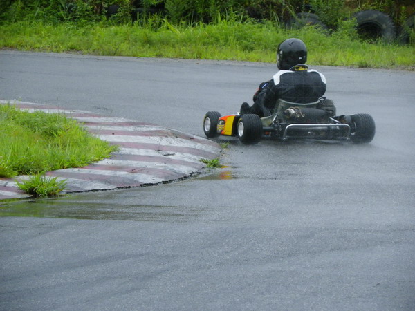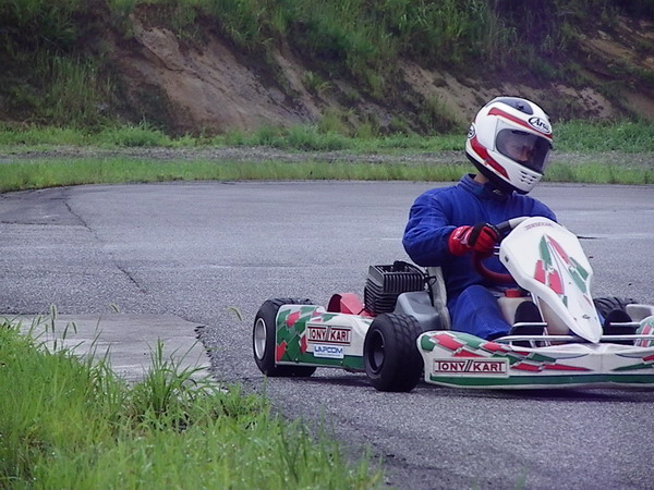 タイヤを暖めるためにハデにドリフトしている場面を激写されましたが、ハデな割に遅いのでカートをやっている人間からしたらお世辞にもカッコイイ写真とは言えないのです。カートをやっていない人から見るとカッコイイのでしょうねぇ。