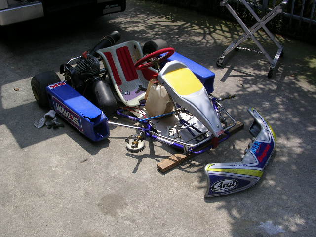 前オーナーはこのイントレに125cc水冷ROKを載せていたそうです。詳しくは聞きませんでしたが125ccを載せているくらいですから大きなサーキットで走っていたのではないかと推測されます。