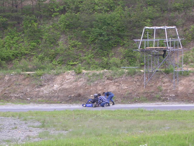 しかしコースアウトの衝撃でどこか壊れたのか、かぶったのかエンジンはかからず。ここで2号機はリタイヤです。