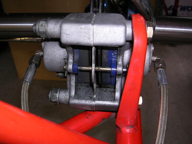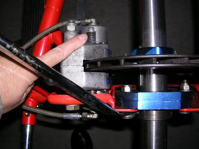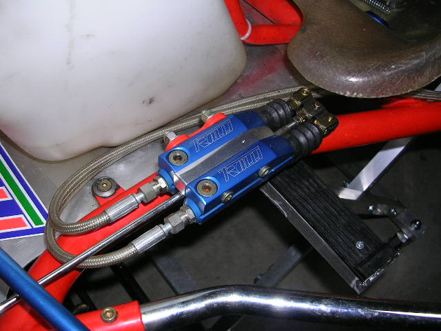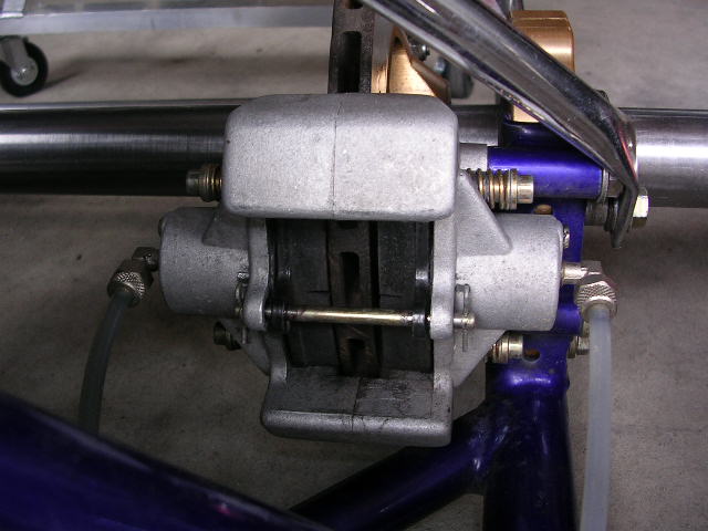 カートのブレーキは構造が単純。マスターバックもなければ油圧の調整機構もナシ。
