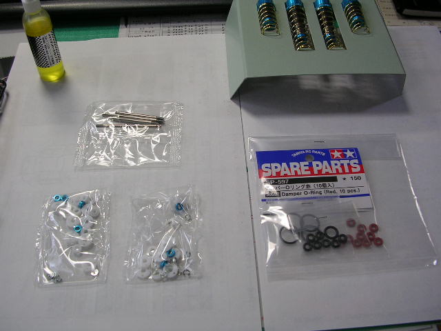 SFGにはDF02用のアルミダンパーに800番のハードオイルを入れてあるのですが、コレが堅すぎ。飛距離が出た分、着地の際の衝撃も増えたのですが、このショックを吸収しきれずに跳ねているようなのです。
