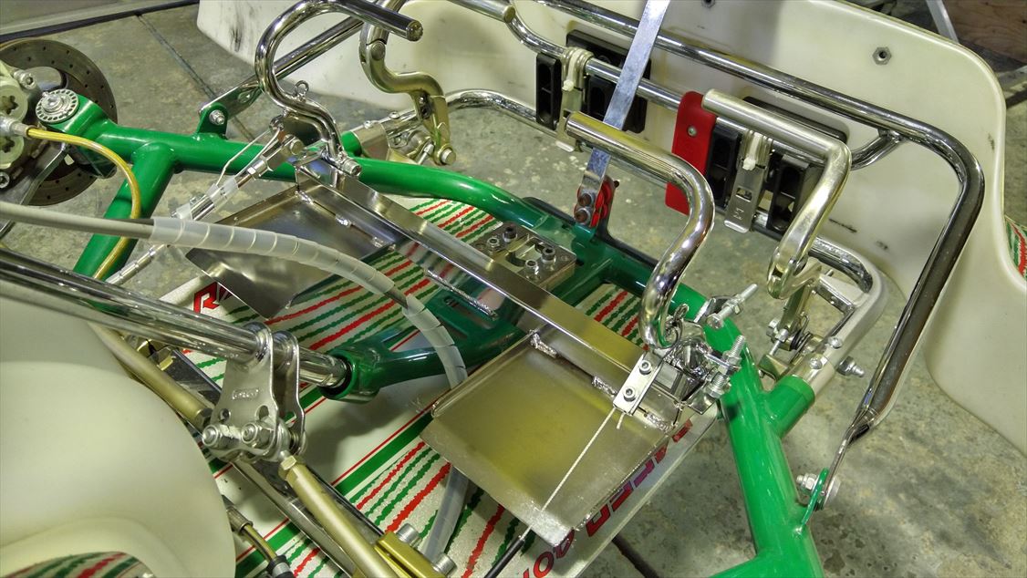するとアクセルワイヤー、ブレーキロッドの角度に無理がかかるので小加工。