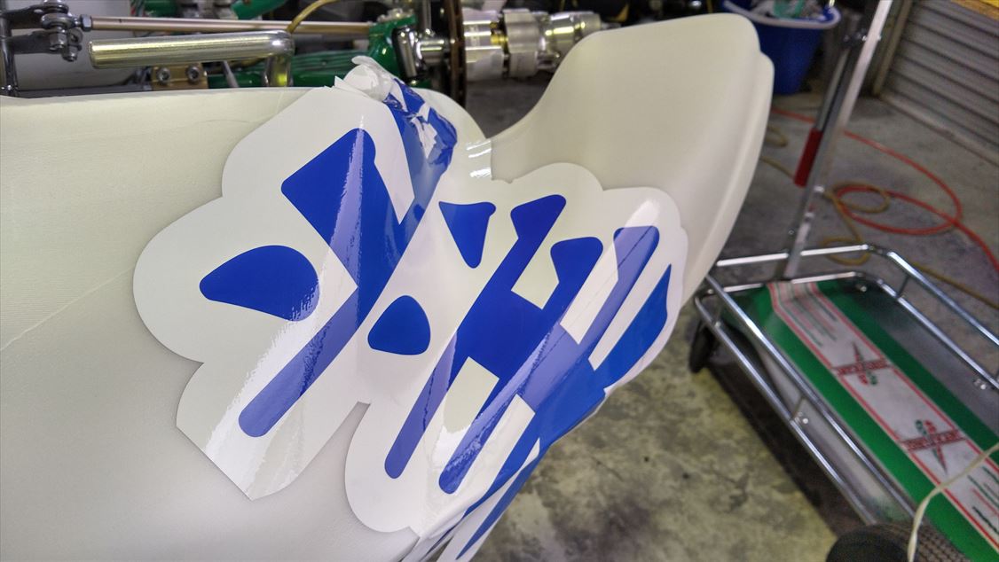 トニーカートのフロントカウルのクソみたいな窪みにも綺麗に貼れました。