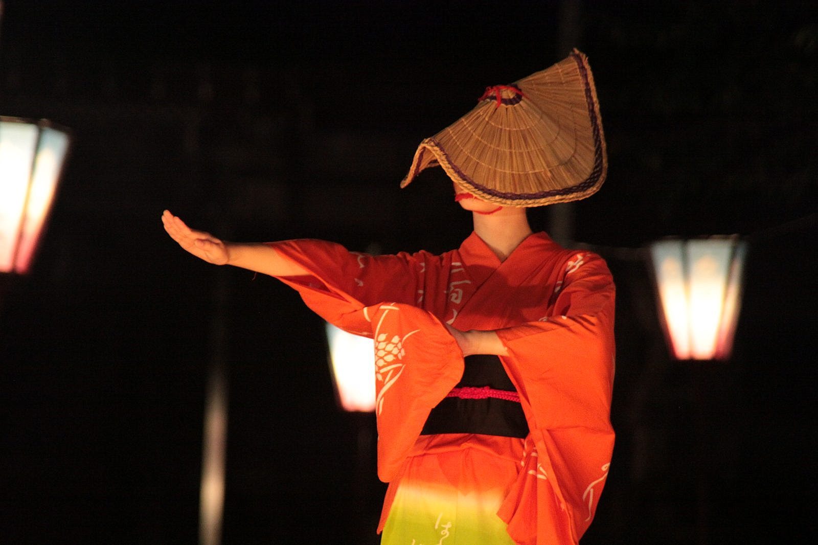 だいたい午前12時すぎから未明くらいまででしょうか、地元の人が自分たちのためだけに踊る町流しが観られます。