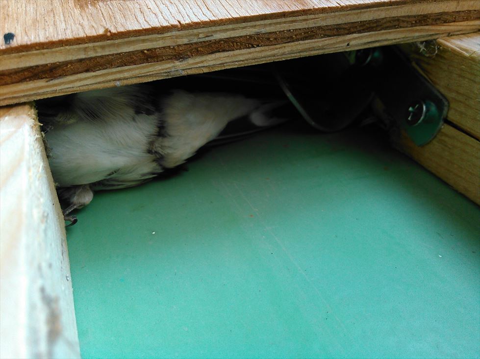 羽を広げることの出来ないほどのスキマだったので身動きが取れなくなっていたようです。
