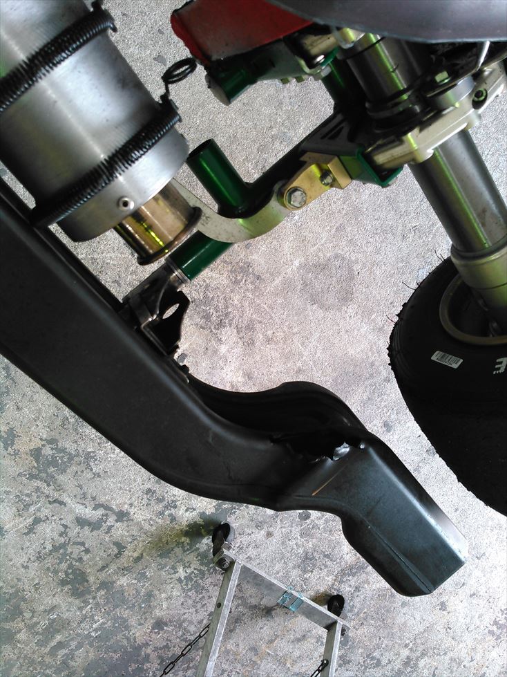 こんな感じのマフラーの取り回しなのですが、排気がちょうどリアプロテクションにあたるのです。