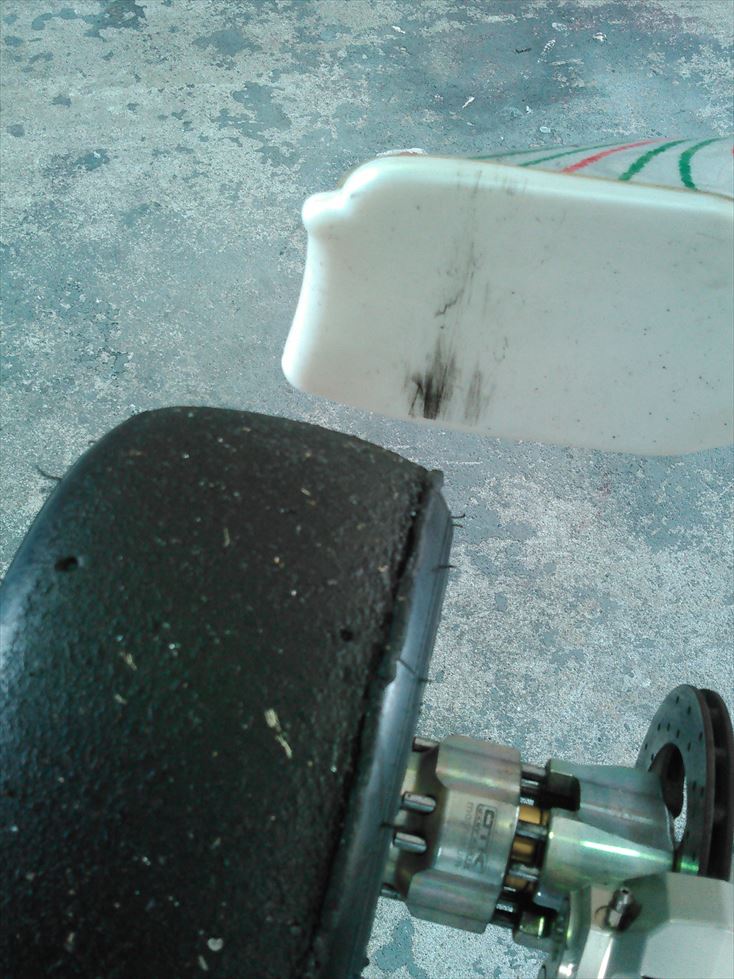 聞けば、全日本のスペシャルコンパウンドを使用した夏場のレースで、タイヤがオーバーヒートしたときに同様の症状が出る事があるとか。