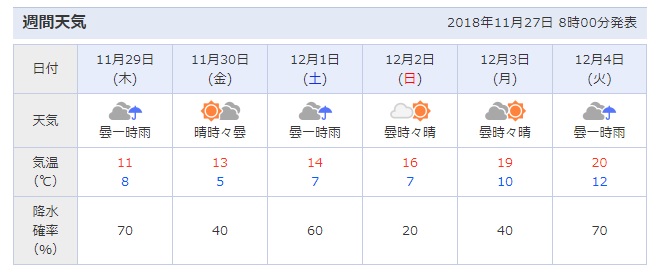 来週なんか20℃の日もあるほど。